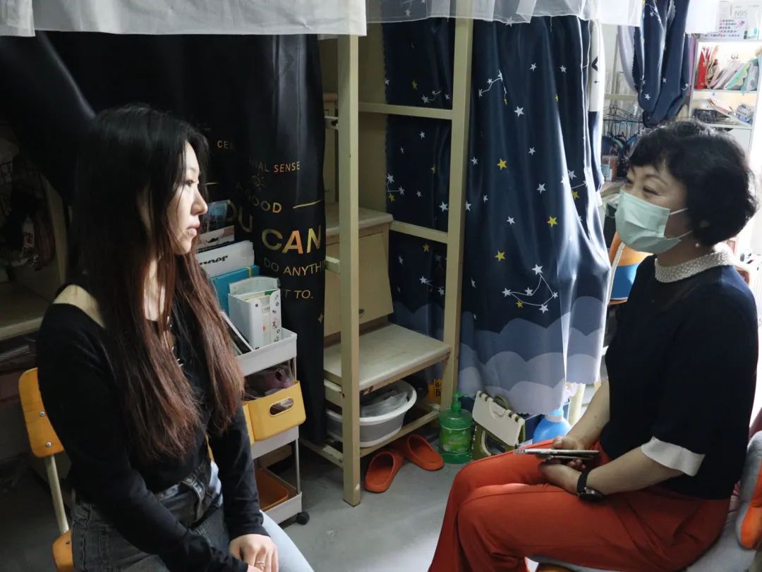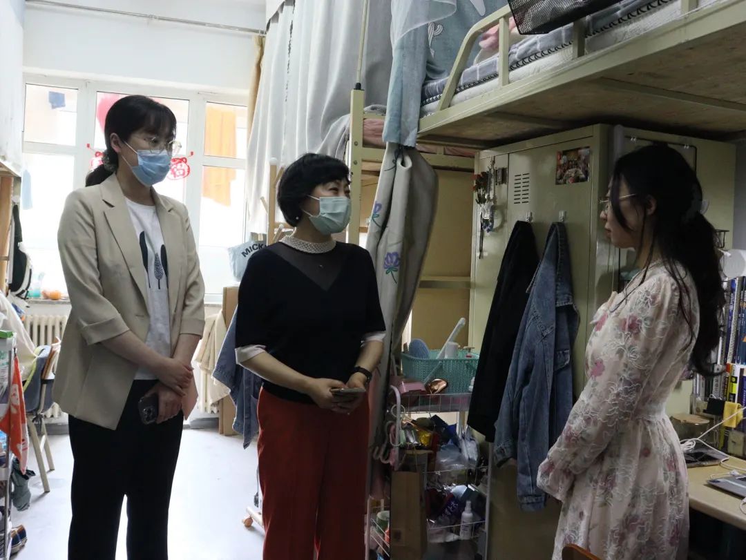 直属党支部书记郝利群带领辅导员侯培岩、毕如一深入学生寝室,开展走访调研。