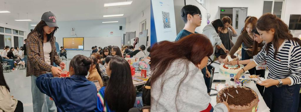 晚会现场被精心装点,张灯结彩,洋溢着欢快热烈的节日气氛,更透出浓厚的“迎中秋、贺国庆”双节喜悦。在各班班导生的悉心组织和班委们的积极策划下,整场晚会节目精彩纷呈,互动不断。同学们纷纷展示才艺,或歌声悠扬,或舞姿飒爽,台下掌声与欢呼声此起彼伏。大家分享着美味的零食与各班定制的专属蛋糕,在轻松愉快的氛围中迅速拉近了彼此的距离,欢声笑语汇聚成一片温暖的海洋。