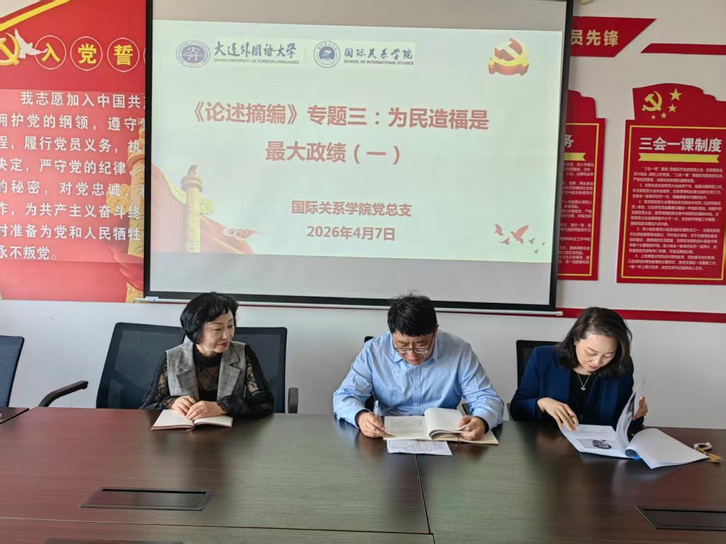 (东北亚研究院)处级领导干部树立和践行正确政绩观学习教育读书班于11B537党员活动室开展第四次集中学习,专题学习《习近平关于树立和践行正确政绩观论述摘编》中“为民造福是最大政绩”相关内容。东北亚研究院副院长吕平领学,党总支书记郝利群、院长薛晓芃参加学习。